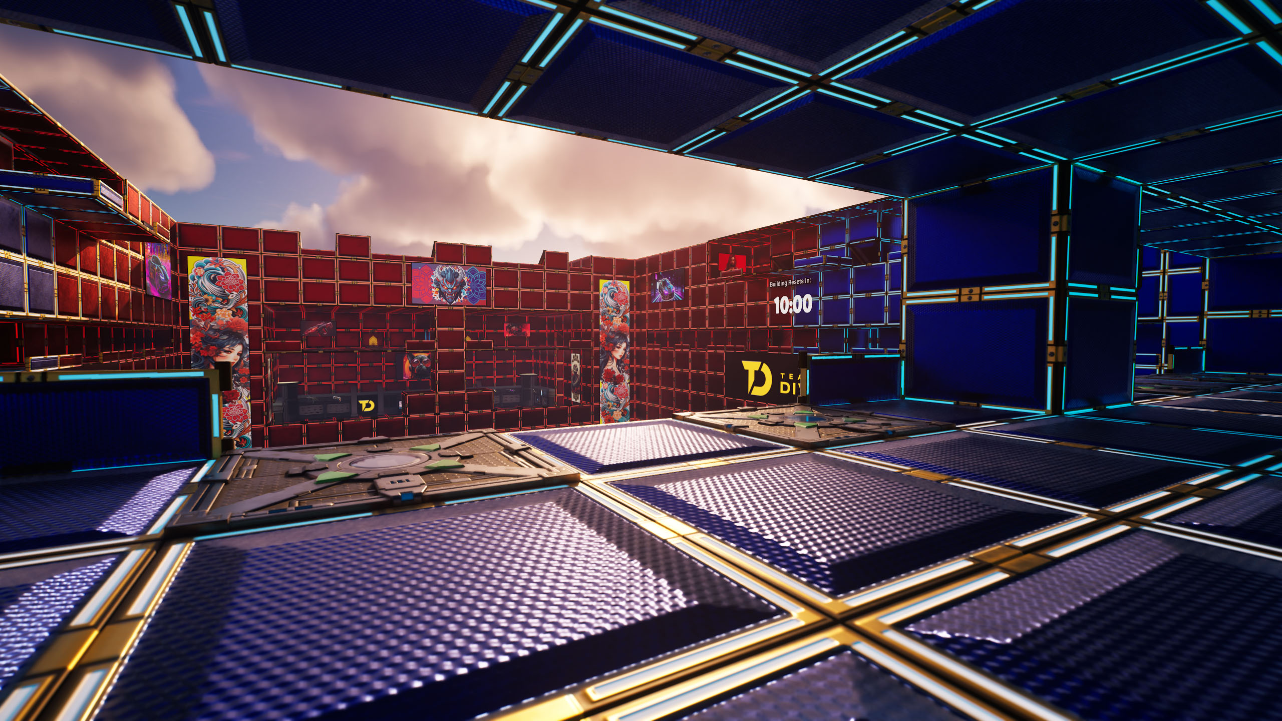 The ask was to build more than a Fortnite map. Team Diverge needed a true community ecosystem: a place fans could explore and connect with the brand, game modes with genuine depth and replayability to keep the community coming back, and a live events program that gave everyone structured reasons to show up. Each experience also needed its own distinct creative identity, something that could stand alone while feeling part of a coherent Team Diverge world.